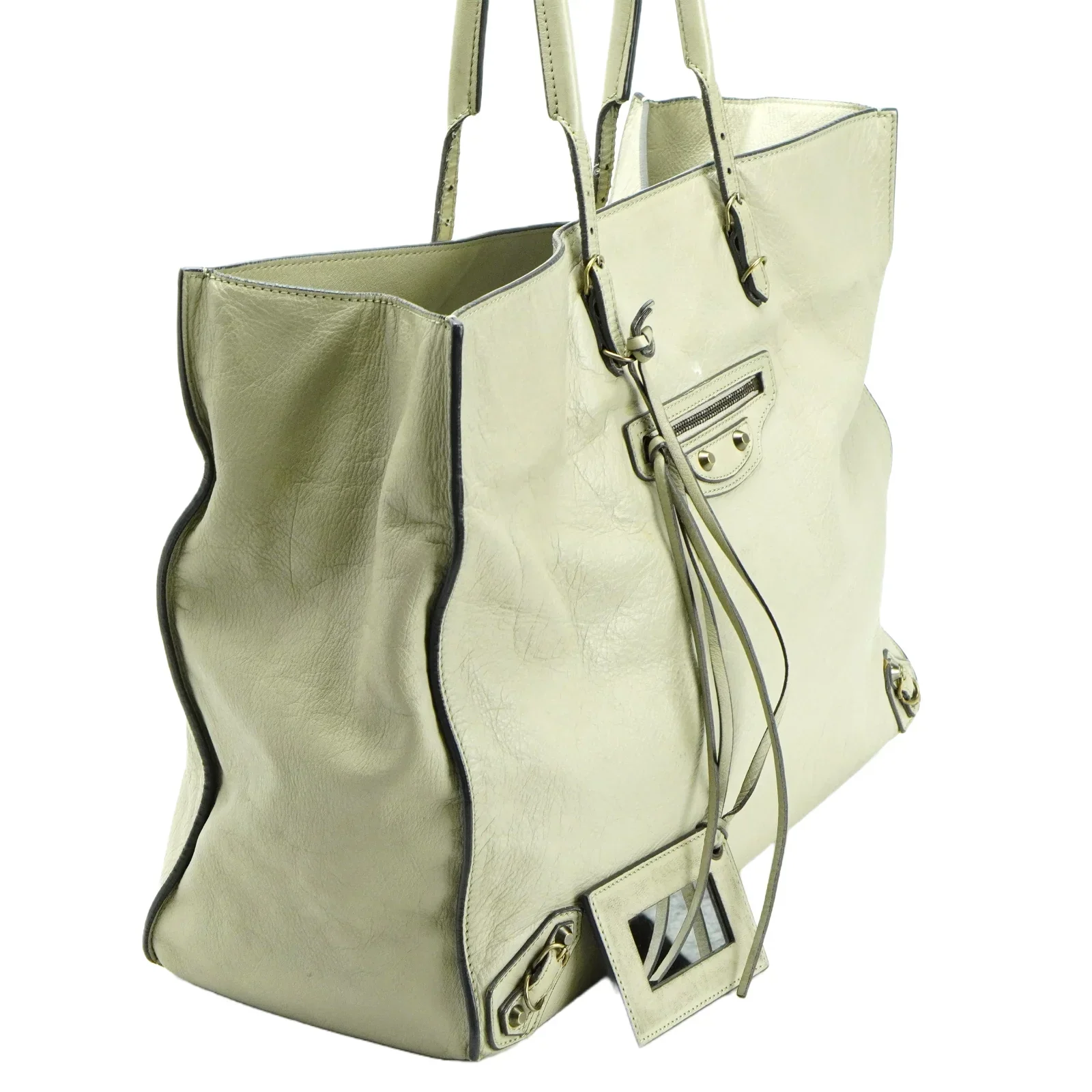 Introducing this Balenciaga Paper Bag in Ivory. Crafted with high-quality leather and silver-tone hardware, it exudes modern luxury. Features include a mini mirror accessory, a front mini zip pocket, and two interior slip pockets. Elevate your style with this versatile and stylish bag.