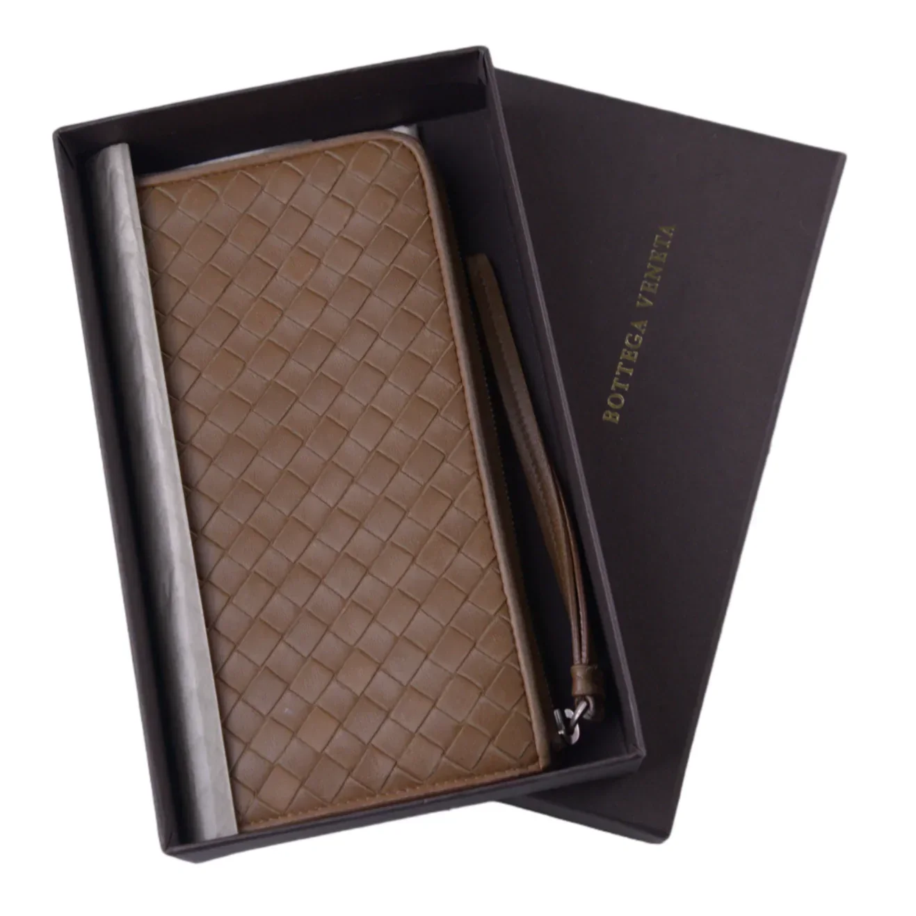 Introducing the Bottega Veneta Intrecciato L-Shaped Long Wallet in Brown.